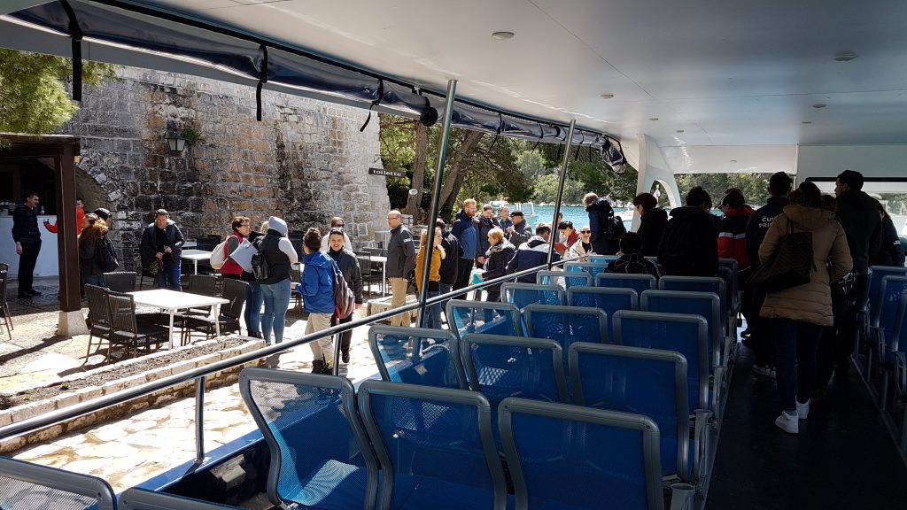 Nakon prezentacija je slijedio obilazak Parka uz pratnju vodiča Ustanove, Lucije Radulj i višeg stručnog savjetnika biologa-ekologa, Jakova Nodila. Obilazak je započeo iz Pomene šetnicom kroz šumu do Malog jezera pa duž obale jezera do Malog mosta, odnosno spoja s Velikim jezerom, gdje je sudionike čekao prvi električni katamaran u NP Mljet, „Niko Nodilo“.