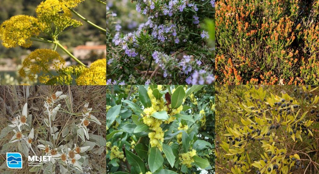 Na području Nacionalnog parka Mljet i cijelog otoka Mljeta raste velik broj samoniklih ljekovitih i aromatičnih biljaka, tipičnih za mediteransko podneblje. Neke od najpoznatijih su: