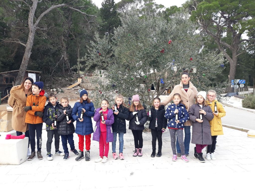 U srijedu, 22.12.2021. učenici OŠ Mljet – PŠ Goveđari su prigodno okitili stablo masline na Pristaništu Velikog jezera u NP Mljet. Ukrase su učenici sami izradili od prirodnih materijala koje su potom ukrasili različitim bojama.